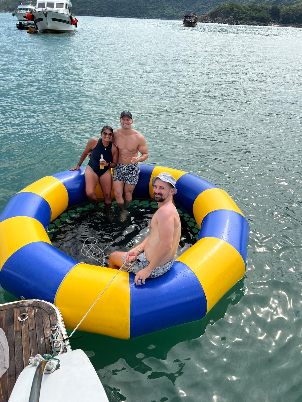 Dreamer is a luxury cruiser fit for 40 people. She is prefect for large groups to explore the beauty of Hong Kong without breaking the bank. It includes floating mat, trampoline and slide in the price. Perfect for party with friends and family.